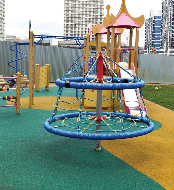 ECOLASTIC® PLAY EPDM rubber granules help reduce the occurrence of injuries in playground areas. It is formulated and developed to absorb impact, and it is designed to provide an additional layer of protection to reduce harm.