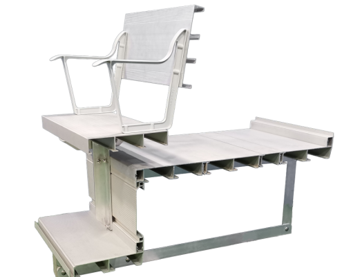 I-Beam permanent grandstands are offered with a choice of various finish applications and options that include roofing over seating areas, press box support structures, aluminum seat boards, foot boards, riser boards and VIP stadium chair seating.