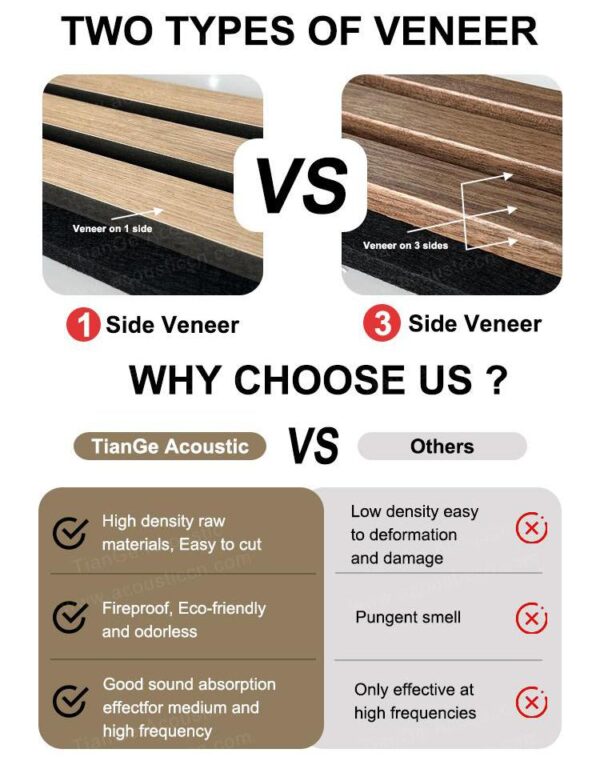 Craft: With wood grain deco strip, fixed with acoustic fiber panel. Not only decor the space, but also absorb the echo!
