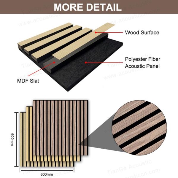 Material: Polyester fiber acoustic panel +E0,E1,E2 grade MDF wood slat/ solid wood
