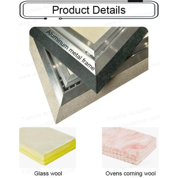 | Craft | Good density of fiber glass wool acoustic panel, with metal frame, wrapped with acoustic fabric on the surface |