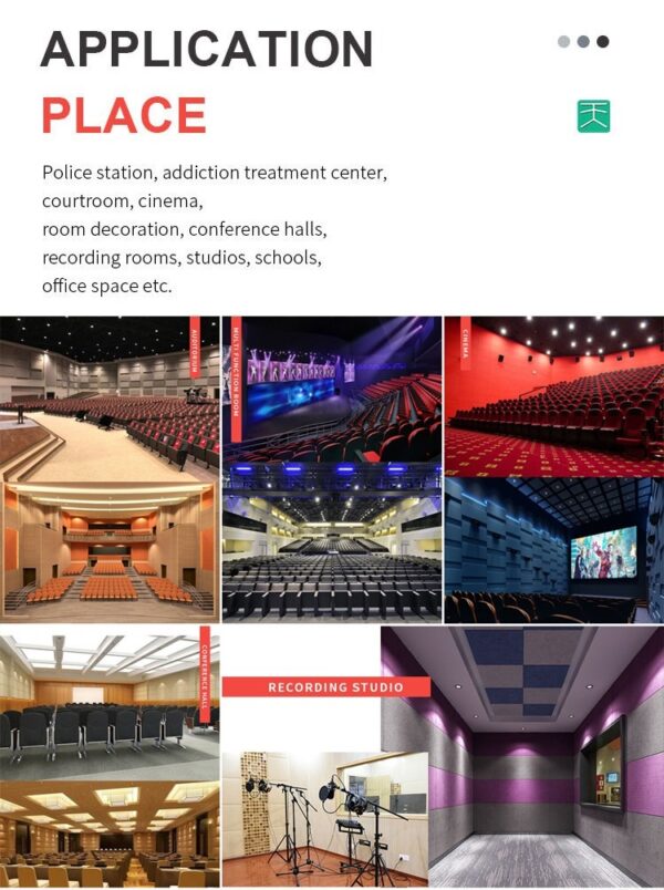 | Application place | Police station, addiction treatment center, courtroom, cinema, room decoration, conference halls, recording rooms, studios, schools, office space etc. |