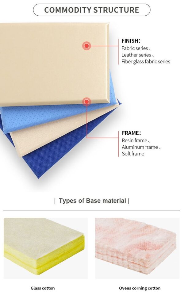 | Craft | High quality glass wool, wrapped with various colors and patterns fabric or leather. Not only decor the space, but also absorb the echo! |