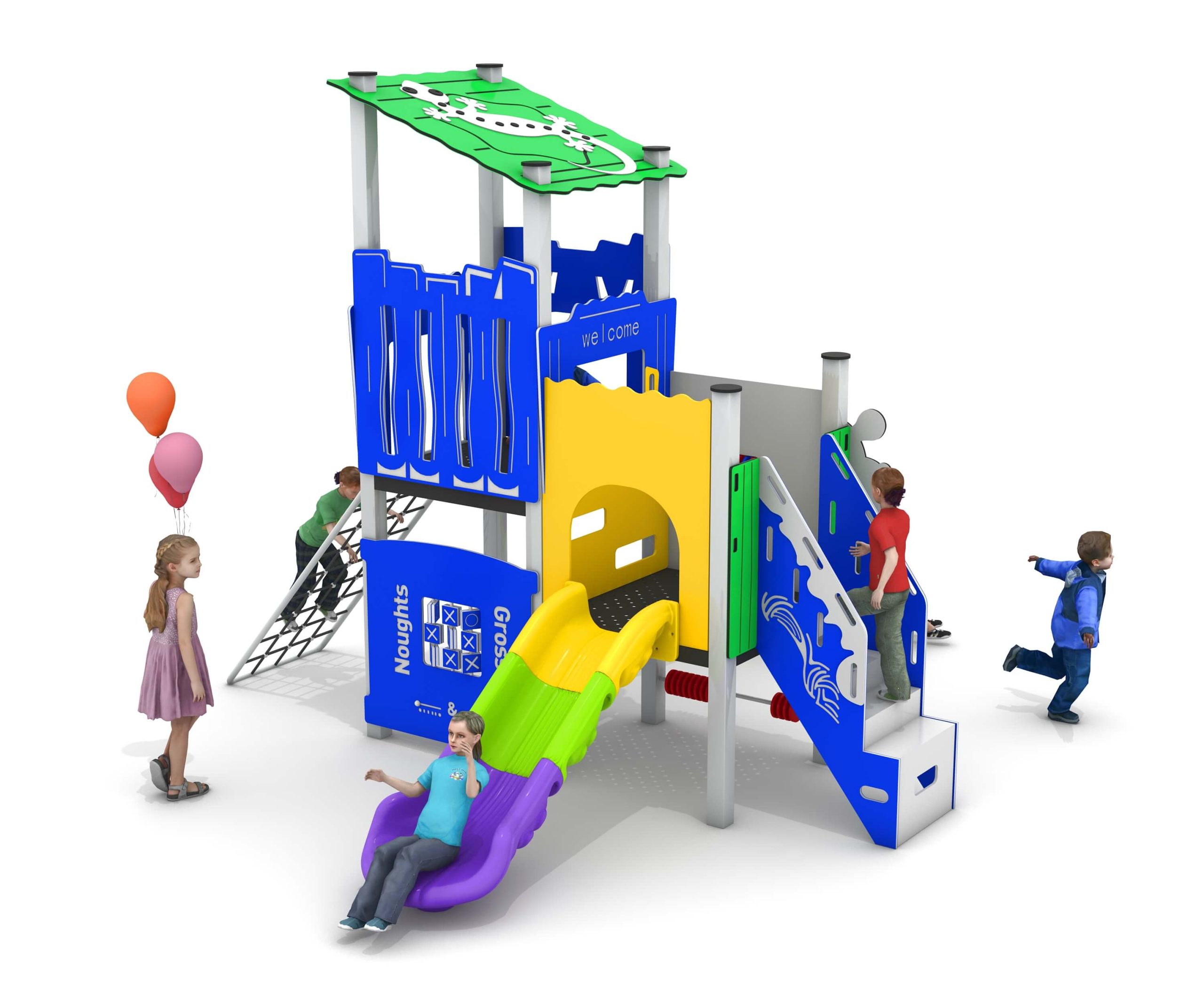 1.PE 2.galvanized steel pipe 3.LLDPE Plastic slides 4.Desk with powder coated 5.Expansion screw mounting