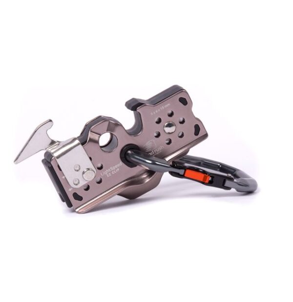 - The curve-over design of the backup carabiner slot keeps the backup carabiner in place throughout braking (reducing wear on your line)